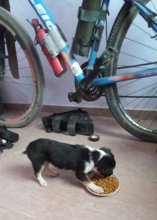 Diez días atrás, Jorge Gómez pedaleaba por las calles de Weisburd, su pueblo natal en Santiago del Estero, cuando la vio en un patio de tierra. Iba y venía, tomaba agua de un charquito, movía la cola. Era una cachorrita tan linda como cariñosa, con esa mirada tierna y esas manchitas blancas entre el pelaje negro que lo enamoraron. Eso fue: amor a primera vista. Ella se acercó moviendo la cola, él la alzó y la adoptó segundos después, cuando la familia que tenía a sus hermanitos de poco más de un mes y medio de vida entre otros diez más perros más grandes aceptó su pedido. También a primera vista él notó que estaba llena de pulgas y pensó que debía llevarla rápido al veterinario para que la revisaran, desparasitaran y vacunaran. Manos a la obra.