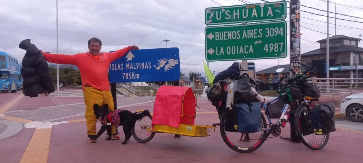 Fue el año que unió en bicicleta La Quiaca con Ushuaia por la mítica Ruta 40. Fue el año que adoptó a otra perrita en un pueblo salteño. Lola al principio también viajó en una caja adelante en la bici, pero creció y él terminó armándole un carrito en la Casa del Ciclista en El Bolsón, un remanso solidario de la Patagonia, un santuario para los viajeros en bici. Así llegó al fin del mundo.
