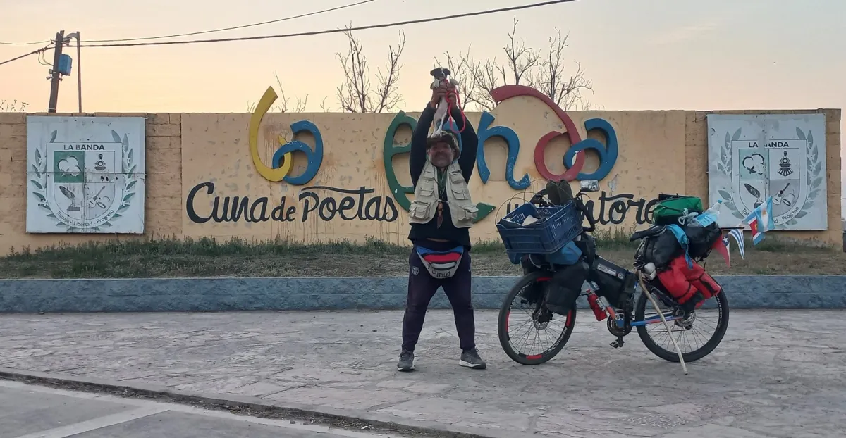 Jorge Gómez pedaleó desde Buenos Aires a Weisburd, su pueblo natal en Santiago del Estero. Iba a seguir rumbo al noroeste, pero una cachorrita que necesitaba ayuda lo convenció de que había un plan mejor. Ahora viajan juntos y acá cuenta la historia.