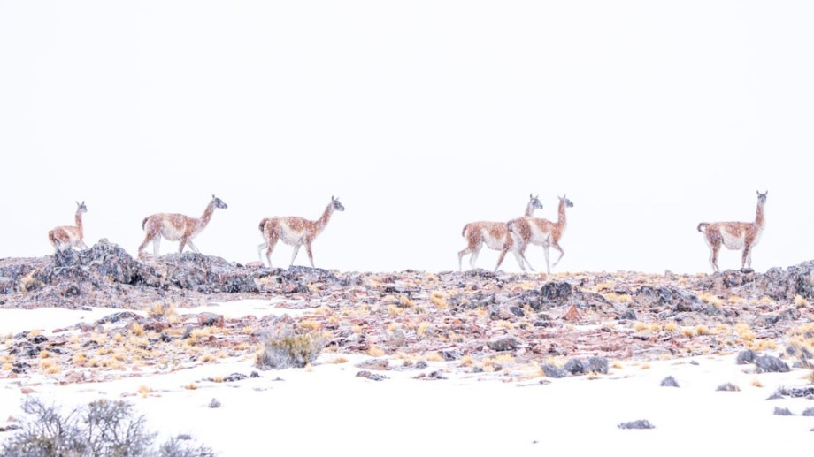 Los guanacos descienden de los 1400 metros de la meseta a los 400 metros de los valles más bajos en busca de alimento. “No son de escarbar; si la nieve deja descubierta la vegetación, ellos se alimentan de eso», dice Galetto. Este proceso es gradual y a veces cubre hasta 70 kilómetros en apenas tres o cuatro días durante grandes nevadas.