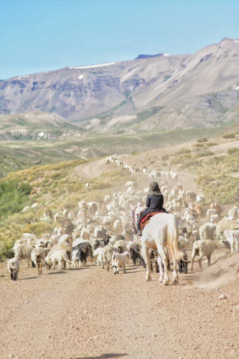 Y los que conocen y los que no, se deslumbran con las travesías de los arrieros con sus piños en busca de las tierras de veranada, donde los chivitos que nacieron en los puestos de invernada se harán fuertes con las pasturas de las laderas donde el blanco de los meses más fríos se transforma en verde en estos días.