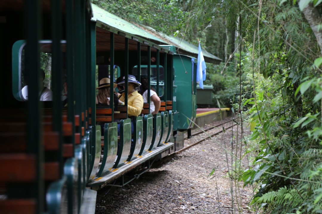 El Tren Ecológico de la Selva atraviesa la selva hasta llegar a la entrada de los principales paseos, generando el mínimo impacto ambiental.