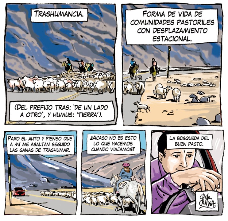 Los crianceros trashumantes de la Patagonia llegaron a Viajeros, la tira de Chelo Candia que publica el Voy.