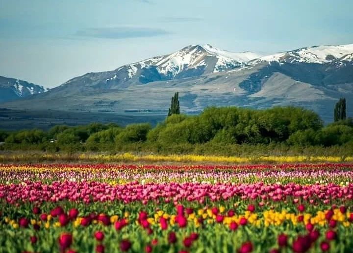 En el campo de Juan Carlos Ledesma en Trevelin (a 26 km de Esquel en Chubut) florecieron los tulipanes que atraen a los viajeros que llegan en busca de una de las postales más lindas de la Patagonia.