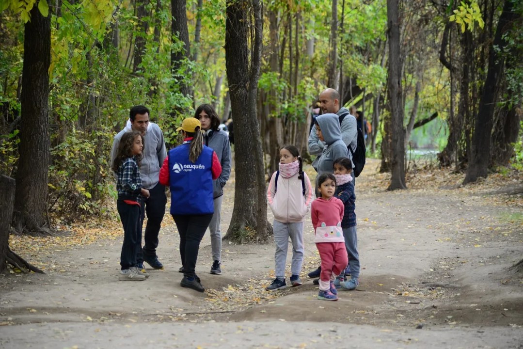 El plan consiste en aventurarse en diferentes estaciones de juegos, hacer caminatas guiadas interpretando el paisaje y cerrar con una salida en minibús por la costa del río hasta el mirador del Limay.