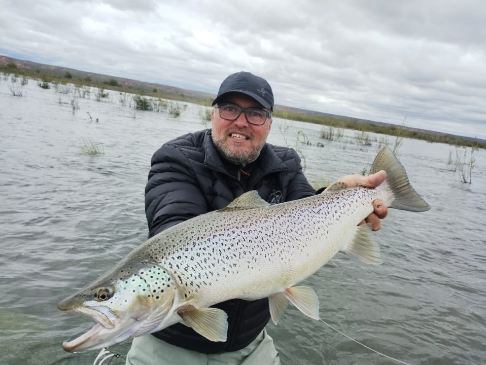 ¿Qué equipos usaron? Una caña 6, línea de hundimiento shooting y una mosca blanca imitación de alevino de pejerrey, detalla el guía.