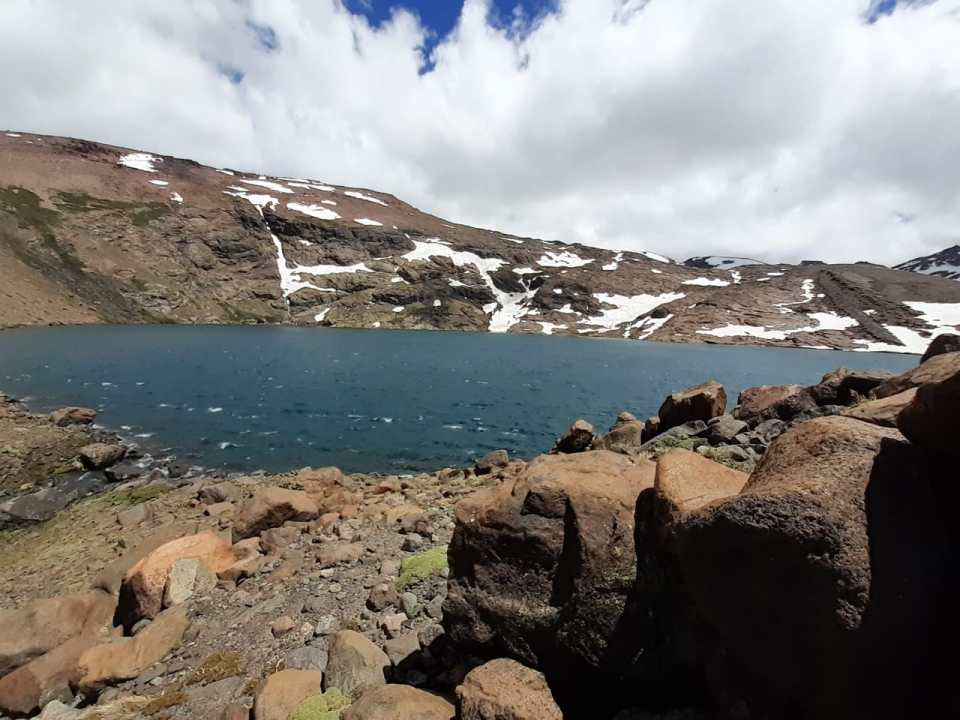 «Ascendemos a la laguna, 2200 msnm, hasta las nacientes del río Curi Leuvu, donde las inmensas rocas, fieles testigos de antiguos glaciares, por donde alguna vez corrían caudalosos arroyos y la cordillera estaba cubierta de nieves eternas», dice Vega.