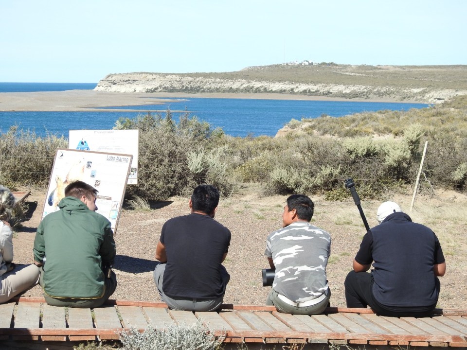 Luis explicó que hay tres miradores separados entre sí por unos 5 kilómetros: «Desde uno se ven pingüinos, desde otro los elefantes marinos y podés ver orcas y en el otro lobos marinos, ahí seguro que hay orcas porque es donde los van a cazar. Hay una estructura de madera en el acantilado y desde ahí se observa todo. Ayer había unas 60 personas, te diría que la mitad argentinos y el resto gringos. Había franceses, alemanes colorados, de todos lados», comentó.