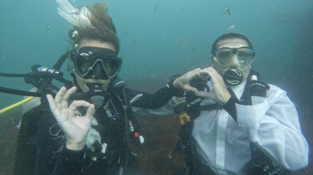 Viajes y Turismo Amor bajo el agua: la historia del primer casamiento en Las Grutas que cautivó a todos José y Fernanda, de Buenos Aires, decidieron casarse de una manera única y extraordinaria. Se atrevieron a hacerlo bajo el mar, en una ceremonia íntima y emotiva en compañía de familia y amigos. Por Natalia López