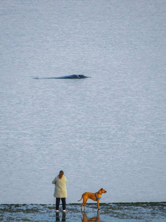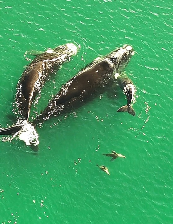 ¿Papá, mamá, ballenato y dos lobitos marinos haciendo piruetas de bienvenida? Mirá este video que filmaron en Las Grutas