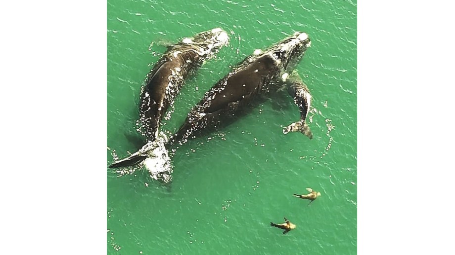 Las escenas a las que alude se hicieron virales, y ahora Río Negro las comparte con vos. Tal y cómo cuenta José los ejemplares adultos parecen guiar al ballenato, mientras dos pequeños lobos marinos giran felices, deshaciéndose en piruetas que siguen la trayectoria del grupo.