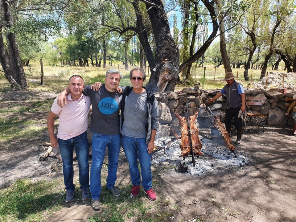 Al volver al lodge para preparar los bolsos y emprender el regreso, apenas entramos y dimos la vuelta cerca de los galpones, allí rodeados por un fogón de piedras autóctonas enormes, dos gauchos doraban un chivito.