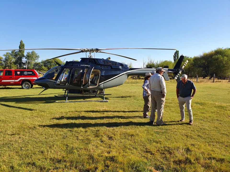 El tercer día, llegó la sorpresa. Pablo, el piloto de helicópteros con el que habíamos compartido la mesa, no estaba allí por error. Cómo su profesión lo indica, junto con él estaba el Bell 407 GXP, agazapado detrás de una arboleda de álamos más allá de los corrales.