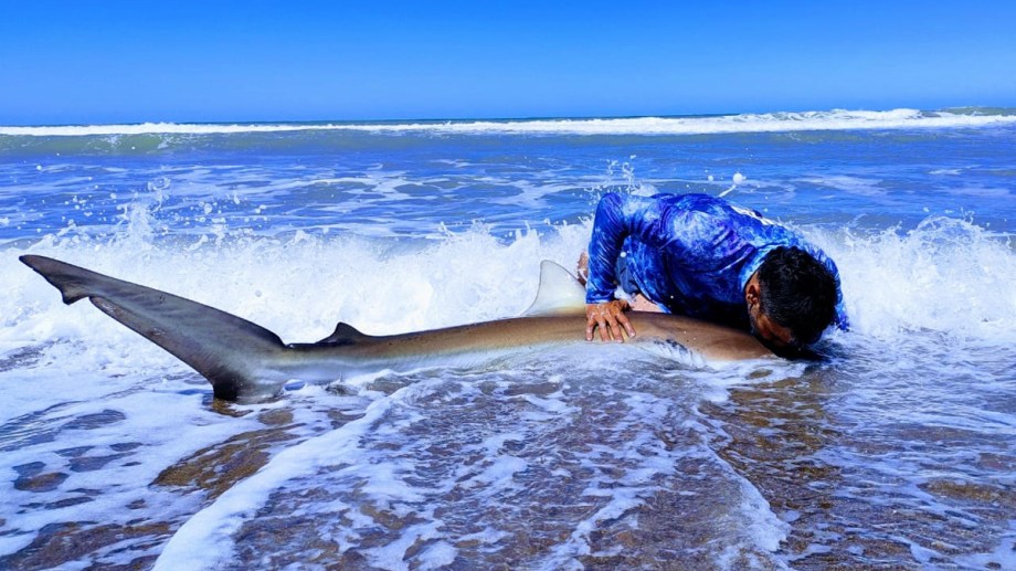 Leandro Navarro es de Viedma y espera cada verano ir al mar para pescar tiburones. Desde hace un tiempo se sumó a al proyecto Conservar Tiburones en Argentina, que propone devolverlos para cuidarlos y estudiarlos, y que hacer un mes se convirtió en ley en Río Negro.