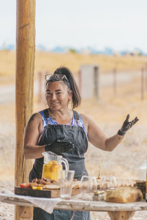 Carola es el corazón de Amar, un proyecto que todavía no tiene paredes definitivas pero sí identidad. Mientras termina de armar su local, su cocina es nómade. Se muda a donde estén los visitantes, puede ser una casa frente al mar, como Casa Camarones, o algún hospedaje en la zona de Islas Blancas. Allí, en la intimidad del alojamiento alquilado, ocurre el cierre del día. Pero el menú empieza a escribirse mucho antes y al aire libre.