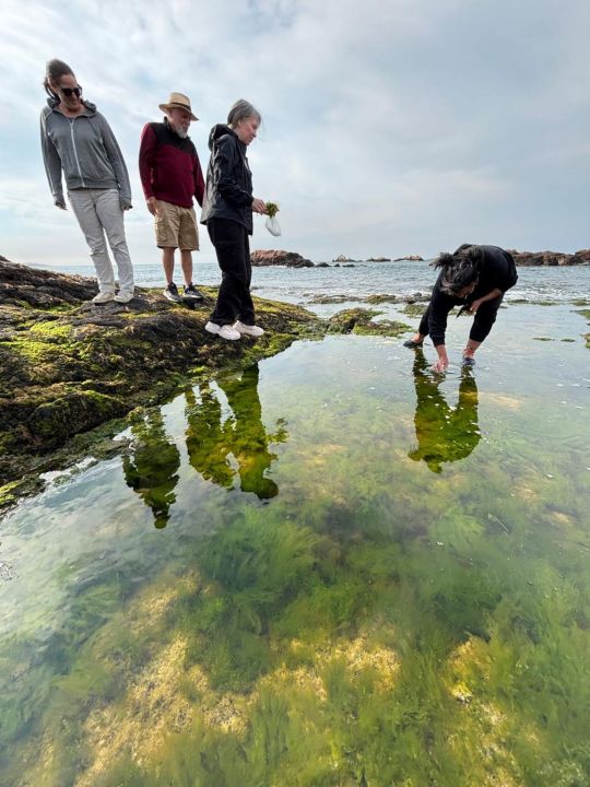 Después llega el intermareal. Caminar entre las rocas obliga a bajar el ritmo, a mirar de cerca. Los visitantes recolectan algas, aprenden a distinguir texturas, colores y aromas. Si el ecosistema lo permite y no hay alertas por marea roja, también se levantan mejillones y lapas. Todo bajo una regla clara, consumir de manera responsable, respetar los tiempos del mar y no llevarse más de lo necesario.