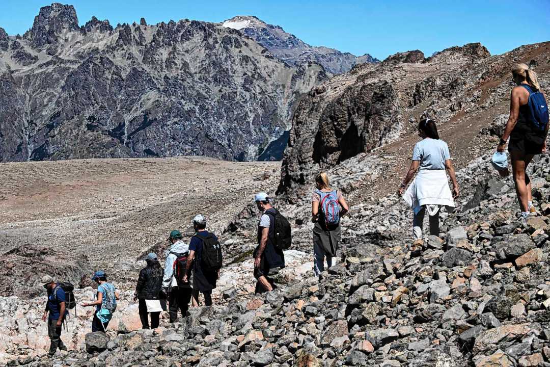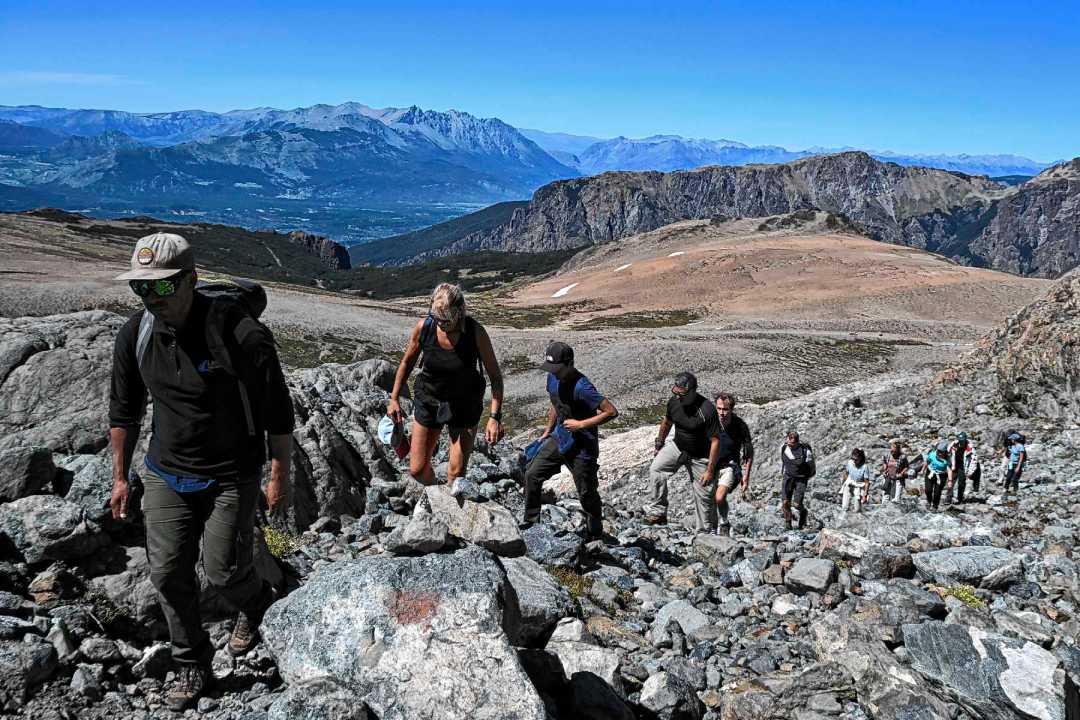 En fila india comienza la caminata. Siempre en ascenso y con paradas estratégicas cuando ya el aliento no llega. “Siempre hay subidas y planos para descansar”, remarca Rodrigo. De frente y a la derecha siempre está el filo de la montaña.