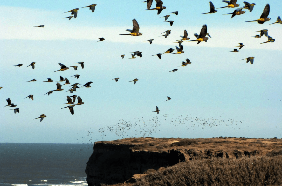 La colonia de loros barranqueros en el Balneario El Cóndor. Foto: Marcelo Ochoa.