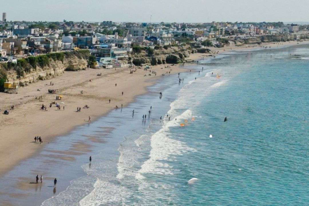 Entre una actividad y otra, la playa sigue siendo el punto de encuentro con el paisaje de fondo del Golfo San Matías que completa la escena. Chicos que corren, adultos que se sientan frente al mar, mates que circulan de mano en mano.
