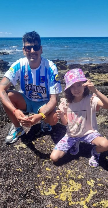 «Playas Doradas, es un lugar mágico, que visitamos como familia todos los veranos. Nosotros somos de la ciudad de Centenario, provincia de Neuquén y hace más de 15 años que visitamos estas hermosas playas, en un rincón tan lindo de la provincia hermana de Río Negro. Ojalá la vida nos permita seguir así por muchos años más, hasta que por generaciones se vaya pasando esta tradición de pesca al palo», dice Federico.
