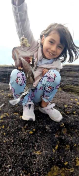 Se trata de una pesca en las cuevas (o pocitos) en las piedras que quedan al descubierto cuando la marea baja. Federico Riffo y su hija de Josefina, de 9 años, lo primero que observan es la marea y en base a eso empiezan a organizar la salida: tiene que estar baja para poder empezar la aventura.