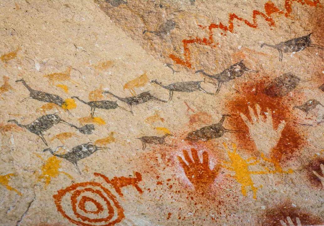 Las pinturas rupestres, que representan animales como el guanaco y el ñandú, son testimonio de las creencias y formas de vida de los pueblos originarios que eran cazadores-recolectores para la subsistencia.