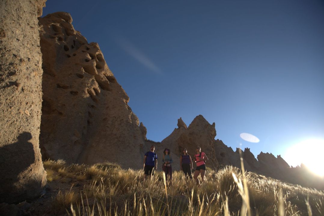 A Los Bolillos se llega tras recorrer 20 kilómetros desde Varvarco, son formaciones rocosas muy particulares, que asemejan tótems de piedra de hasta 15 metros de altura y son de origen volcánico. El viaje al Domuyo regala postales, como el paso por el cajón del Atreuco, donde el río se abrió camino horadando las rocas durante miles de años. “Las formaciones de Los Bolillos, son parecidos a Capadocia, pero acá, no hace falta ir tan lejos”, dice y se ríe.