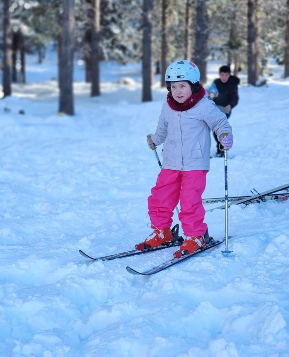 Amaia llegó contenta a la primera clase, acompañada por su mamá y su madrina. Al principio le dieron curiosidad los esquíes, las botas, pero enseguida se adaptó. Y otra clase, como tenía las botas llenas de nieve, pidió si la dejaban llevar a la casa para secarlas. Con esa sonrisa, difícil decirle que no. «Lo tomó como un premio y se fue orgullosa. Esta acostumbrada a la nieve, está feliz acá», dice Mario.