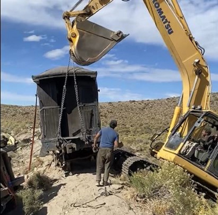 Una vez que estaban sobre la vía, viajaron con la locomotora, se hizo una revisión y se enganchó para llevarla hasta Río Chico donde se guardó. Ahora, están revisando toda la formación minuciosamente para ver frenos, enganches, paragolpes y todo lo que hace a la seguridad para llevarlo hasta Jacobacci.