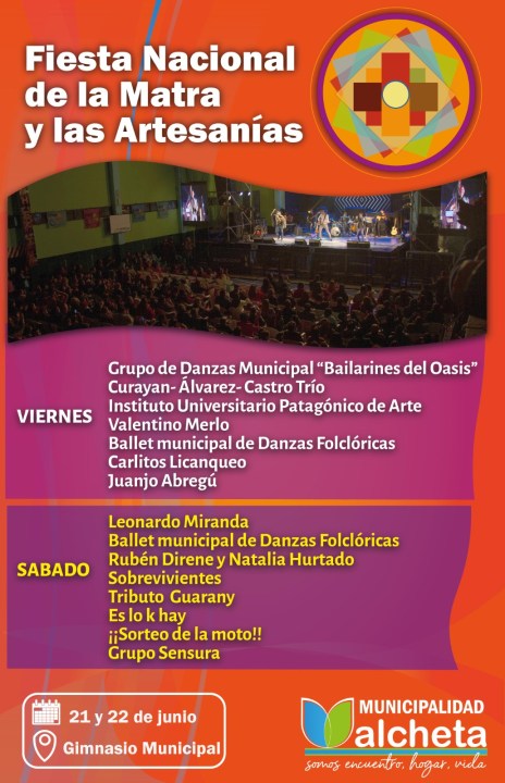 Por la noche todo se trasladará al gimnasio municipal. Allí se presentarán artistas locales y regionales, grupos de danza y diferentes espectáculos.