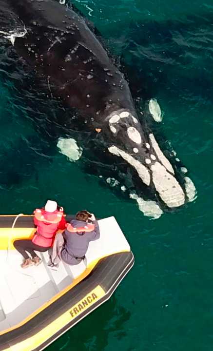 «Realmente estamos muy contentos porque es un gran año. Las ‘francas’ suelen empezar a llegar entre fines de julio y principios de agosto. Pero esta vez nos sorprendieron, por su arribo temprano y por su cantidad. Ni bien arrancó julio pudimos avistarlas, y además se vieron (y siguen apareciendo) muchas madres con crías. Por eso es un espectáculo salir a navegar, y la gente se queda fascinada con lo que se ve. Desde las escenas más tiernas de los ballenatos navegando a la par de sus ‘mamis’ hasta grupos de cópula o ejemplares solitarios» contó Agustín Sánchez, de ‘Rupestre, experiencia patagónica’ una firma que opera en el Puerto San Antonio Este (a 65 km de Las Grutas por ruta 3).