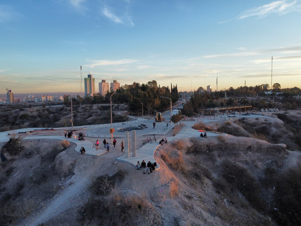 Es ideal para ver cómo se expande la ciudad hacia Cipolletti, sentir la brisa cruzada entre ríos y fotografiar panoramas amplios desde diferentes alturas. El parque suma senderos, bancos modernos y tranquilidad en un entorno urbano cuidado.