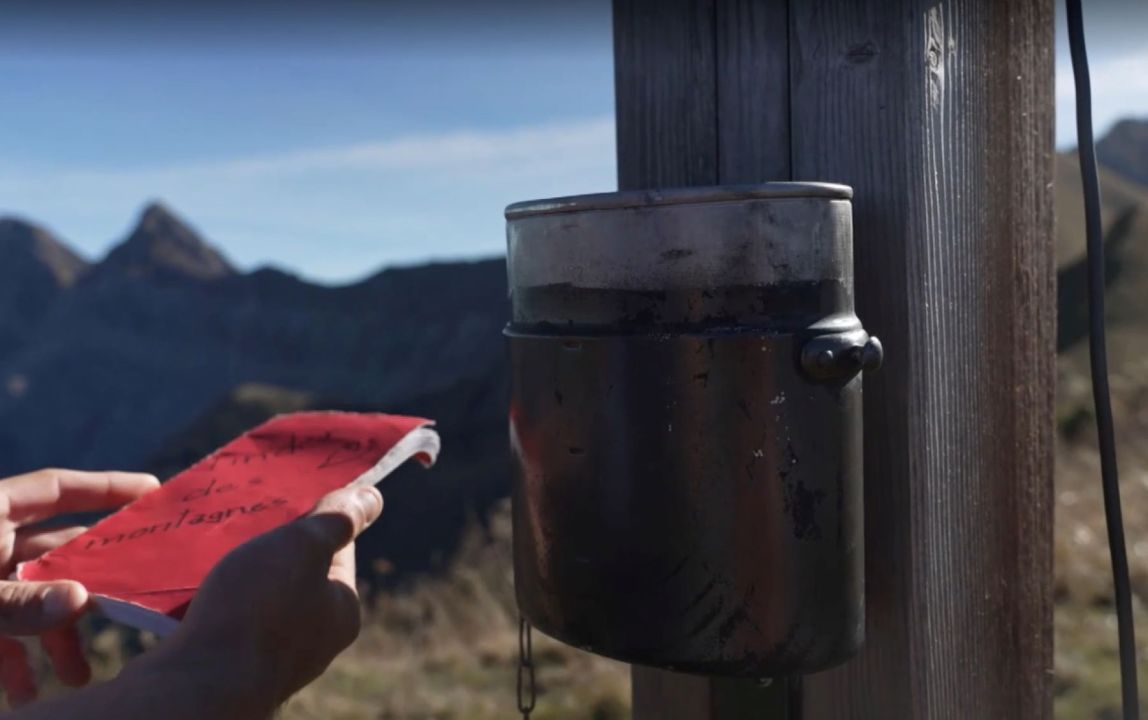 Thibaud Monney ha repartido varios cuadernillos por algunas cimas del país alpino para las personas que coronen y busquen alguna cita. (Captura imagen RTS)