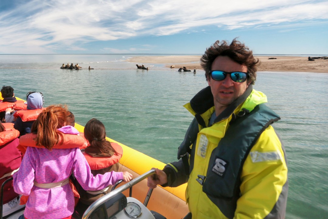Con el tiempo decidió radicarse en Puerto San Antonio Este, a 65 km por la Ruta 3. Invirtió en un semirrígido de ocho plazas y comenzó con la aventura de guiar a los turistas en los avistajes de fauna marina.