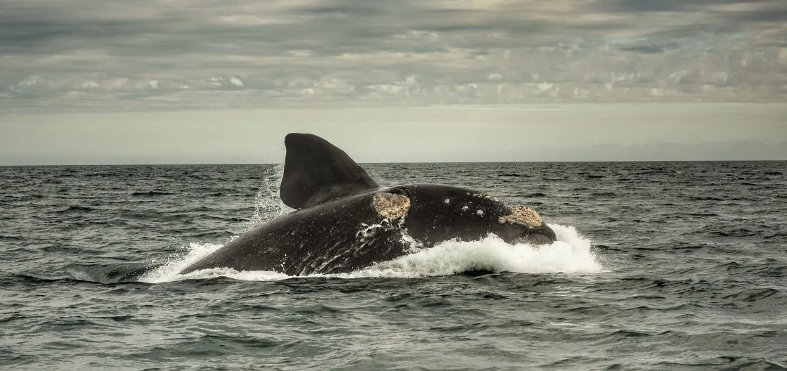Agustín Sánchez lo vio con la aleta dorsal destrozada por un disparo en septiembre del 2022, cuando llevaba a turistas a avistar ballenas en Puerto San Antonio Este. Cada vez que sale a navegar lo busca y fue testigo de su asombrosa recuperación en esta joya de la Patagonia.