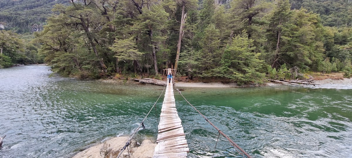 A solo media hora más de trekking, te vas a encontrar con el refugio La Tronconada: seguís por el mismo camino río arriba y vas a hallar el desvío que te hace cruzar una vistosa pasarela que atraviesa el río Azul.