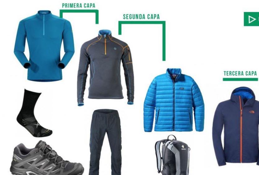 Ropa: vestirse con el sistema de las 3 capas: la primera es una camiseta transpirable; la segunda, una chaqueta térmica, y la tercera, un rompevientos impermeable y campera abrigada para el frío. Nuestro calzado debe ser adecuado (mejor que cubra el tobillo) y se usarán medias que absorban la humedad (dos pares). También llevaremos un gorro/a, guantes (2 pares).