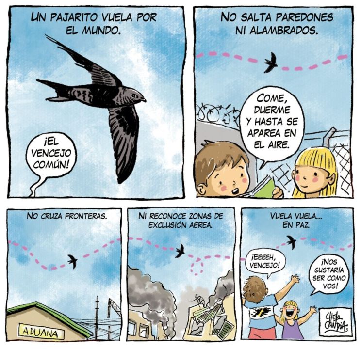 «Un pajarito», la tira de Chelo Candia en el suple Viajes y Turismo a 44 años de la gesta de Malvinas