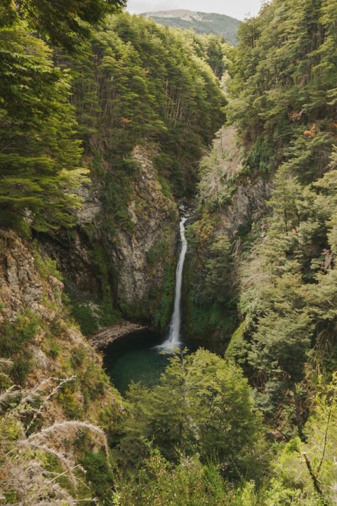 Los turistas caminan hacia el bosque nativo del Sendero del río Bonito. A cada lado, los pinos dan la bienvenida. El guía cuenta la desgracia del pino ciprés, que suele morir en manos del invasivo oregón. O lo resiliente que es el radal, que vuelve a crecer aunque lo corten. En el suelo, algunos hongos invitan a la fiesta. “Los alucinógenos son rojos y azules”, dice Juan Caló, aunque allí todos son pardos. Una Mutisia solitaria entre los troncos, con su vestido naranja presume de ser la flor provincial. La vida en el bosque tiene sus reglas, sus tonos y se respira muy pura.
