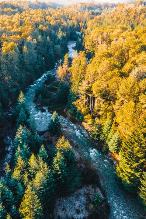 Al avanzar, las ramas tapan el cielo y entre los troncos todo se vuelve sombra. “El sendero pasa a lo largo de río, está cercano a Puerto Manzano y es un recorrido típico en Villa la Angostura”, dice el guía y de fondo se escucha el ruido del agua que corre entre piedras blancas al encuentro con el lago Nahuel Huapi.