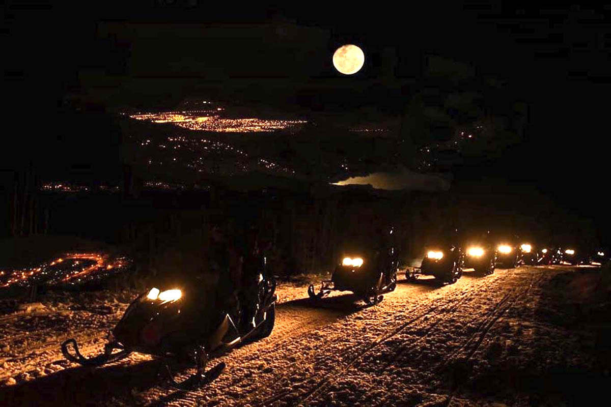 Se trata de una travesía nocturna en cuatriciclos 4×4 con orugas biplaza, que recorre un bosque de lengas sumergido en el silencio de la noche en la montaña más cercana a la ciudad, que ofrece a mitad de camino una parada técnica con una fogata al aire libre para descansar antes de emprender el tramo final que conduce a un refugio donde se ofrece la cena gourmet que incluye bebidas, champagne, entrada y postre.