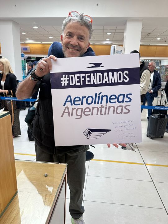 «Aguanten, Aerolíneas de soberanía». O…«Estamos con ustedes«. Esas frases, anotadas a mano o impresas, van pegadas en los equipajes de muchos pasajeros. Para que los que los despachen sientan que ellos los apoyan. Porque también aspiran a que las aerolíneas que usan sigan siendo tan argentinas como lo son hoy.