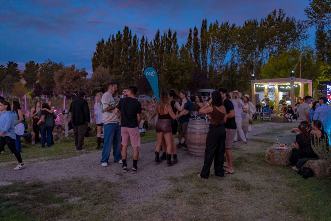 De a poco, las copas se fueron llenando. Algunos caminaron entre las vides, otros se acomodaron en las mesas dispuestas sobre el pasto. La música electrónica de la DJ Luz Mala, de Chos Malal, flotaba en el aire mientras en el cielo volaban algunas aves en bandada.