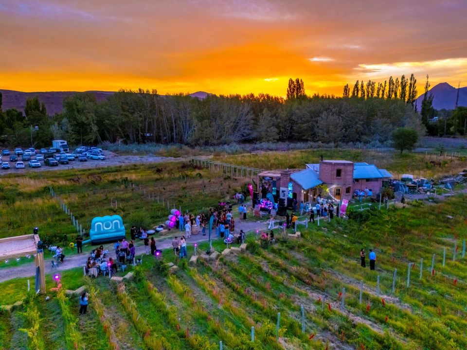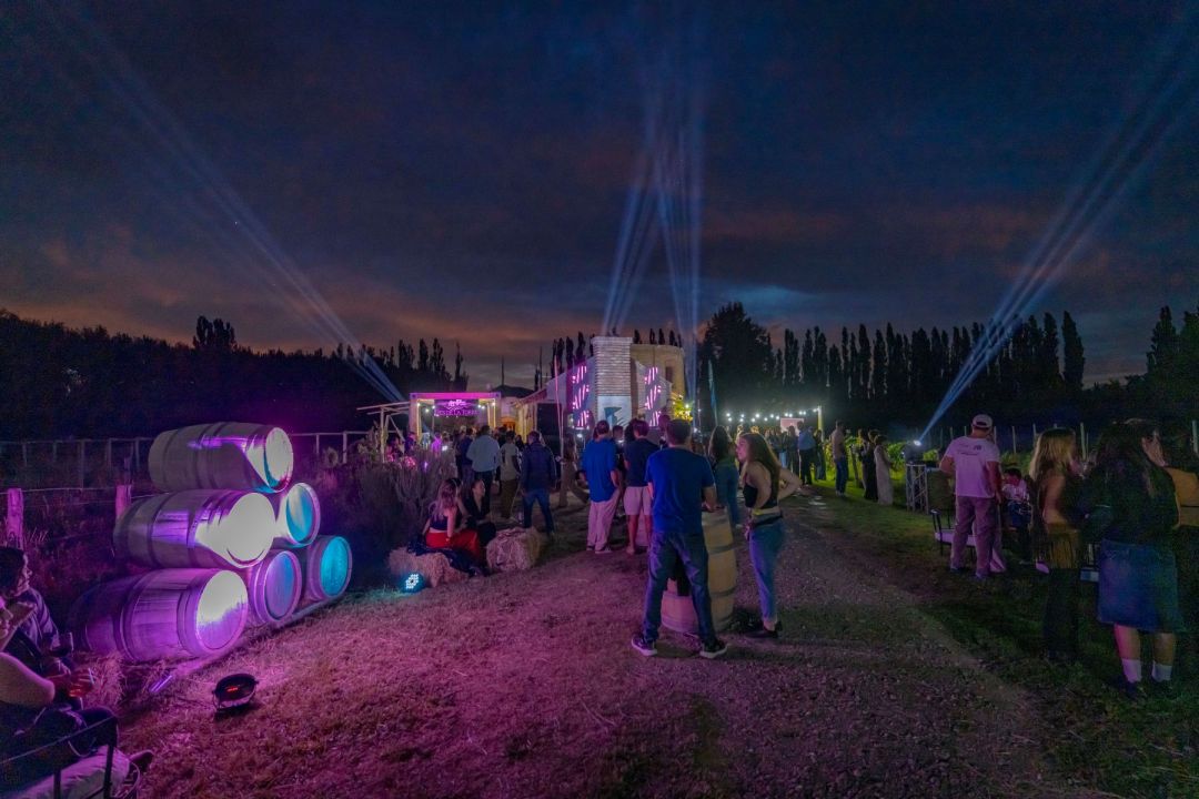 Vendimia al atardecer en Des De La Torre: copas, música y viñedos en Chos Malal