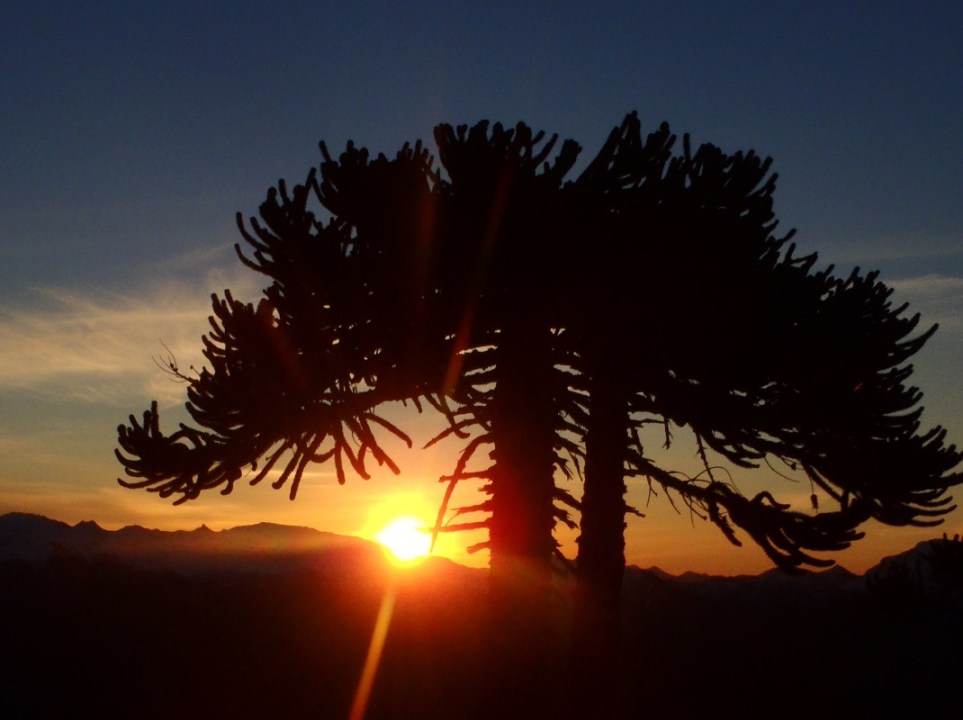 Junto al camino crecen pehuenes o araucarias de diferentes tamaños: jóvenes, que no superan los dos metros, y adultos, gigantes milenarios que pueden llegar a los 50 metros.