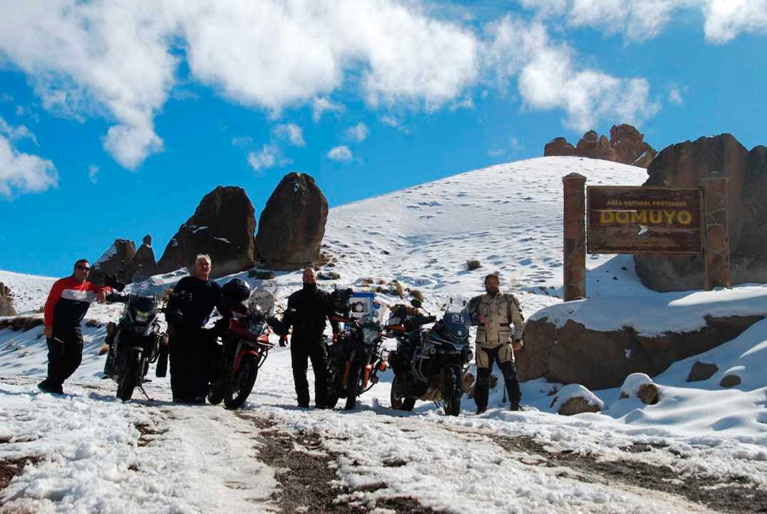Los cuatro amigos que viajan en moto en el Área Natural Protegida Domuyo en el norte de Neuquén, a unos 540 km de la capital provincial. Fotos: Pablo Romanos