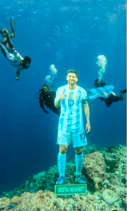 Ahora, quienes visiten el archipiélago de las Laquedivas y se animen a bucear en el agua transparente hasta 30,48 metros de profundidad, podrán disfrutar de los corales, los peces de colores y encontrarse nada más y nada menos con esta impresionante imagen de Lionel Messi.
