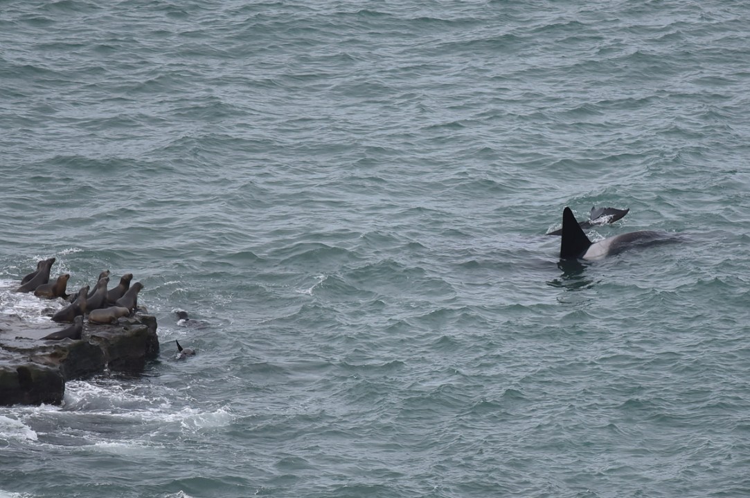 En esos primeros tres días, con matices cada jornada, las orcas aparecieron alrededor de las 11 de la mañana y les perdieron el rastro pasado el mediodía cuando se alejaban rumbo a la playa La Lobería a tres km, desde donde es posible observarlas desde la costa, pero más lejos que desde el mirador y sin su perspectiva de altura.