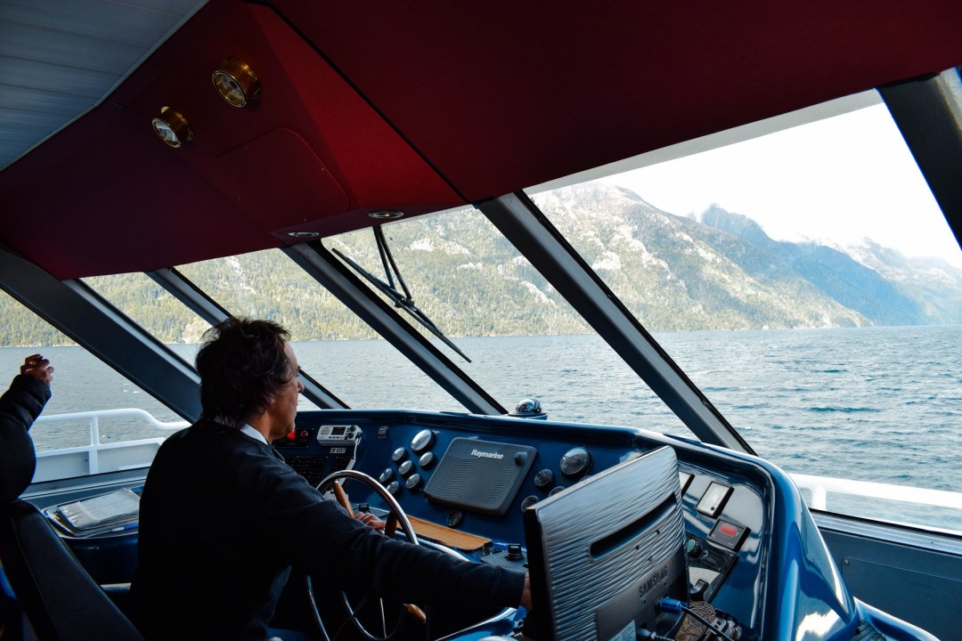 La nave parte puntual a las 10, desde Puerto Pañuelo y, apenas alejándose de la costa, el Nahuel Huapi se abre majestuoso y genera una sensación de inmensidad.