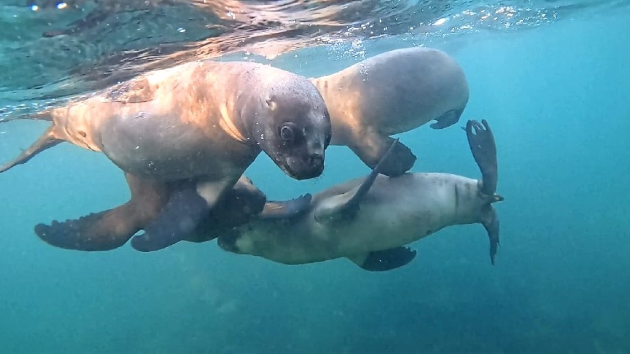 Cachorros de mar: hacía snorkeling en Puerto Madryn, llegó la pandilla de lobitos más tierna y el video es genial